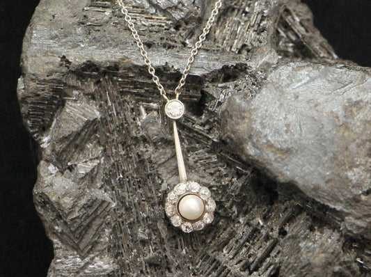 ART DÉCO Wunderschönes COLLIER mit DIAMANTEN & PERLE | Vintage | Platin