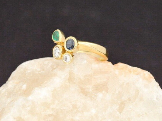 HENRICH & DENZEL Designer RING mit BRILLANTEN, SAPHIR und SMARAGD | 750er Gold