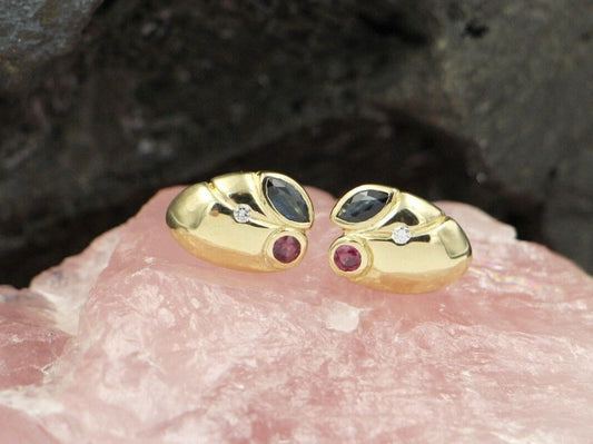Moderne OHRSTECKER mit SAPHIR, RUBIN und BRILLANTEN | 585er Gold