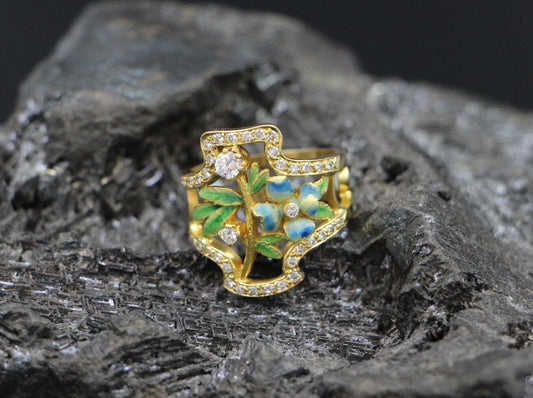 MASRIERA Y CARRERAS Designer RING mit BRILLANTEN & EMAILLE | 750er Gelbgold