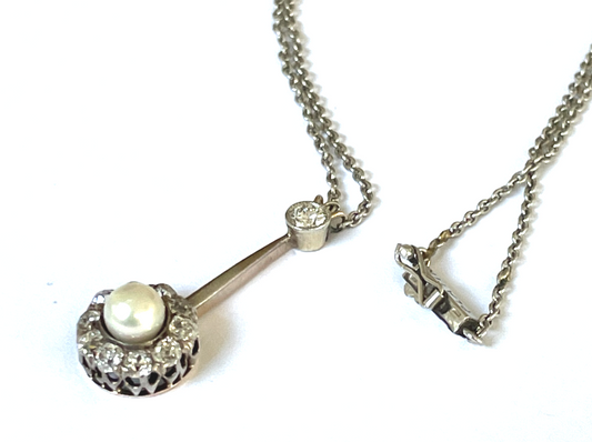ART DÉCO Wunderschönes COLLIER mit DIAMANTEN & PERLE | Vintage | Platin