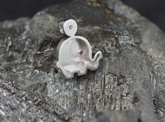 Moderner ANHÄNGER "Elefant" mit BRILLANT & RUBIN | 750er WeissGold