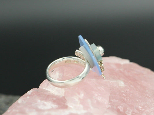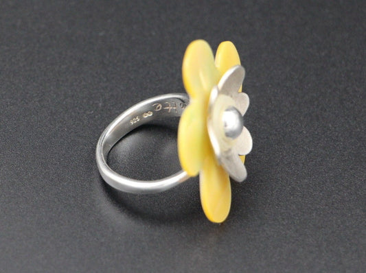 CHARLOTTE Floraler Designer RING mit PERLMUTTSCHEIBE | 925er SILBER