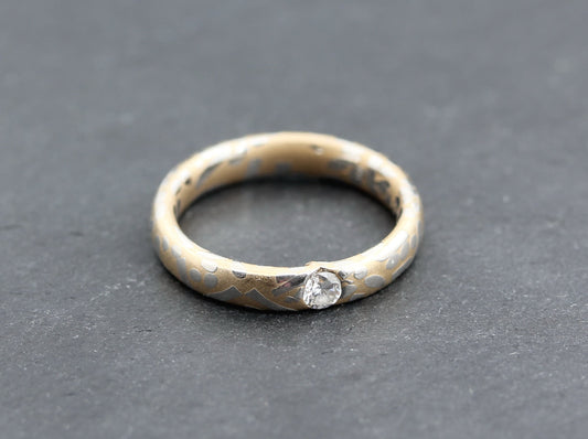 Ausgefallener DESIGNER RING mit BRILLANT | 750 Gold & 950 Platin | fein strukturiert