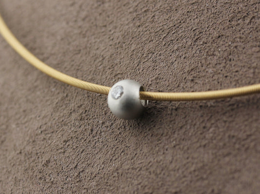 BUNZ Moderner HALSREIF + BRILLANTKUGEL | 1,3mm / 38cm | 750 Gold + 950 Platin