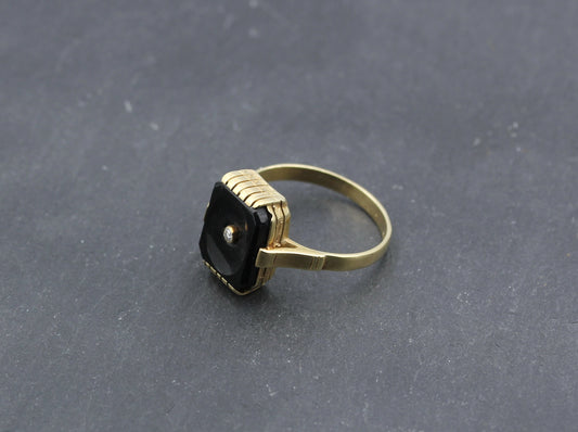 Wunderschöner vintage RING mit ONYX & DIAMANT | 585er Gold