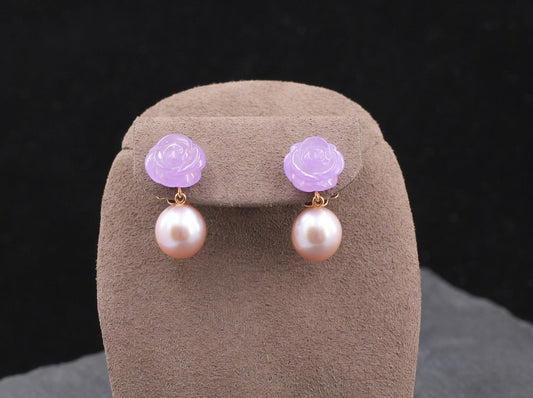 MIMI Designer OHRSTECKER mit LAVENDELJADE & PERLE | 750er Roségold