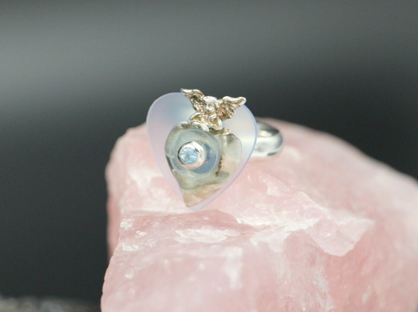 CHARLOTTE Designer RING mit ENGEL & HERZ | 925er SILBER