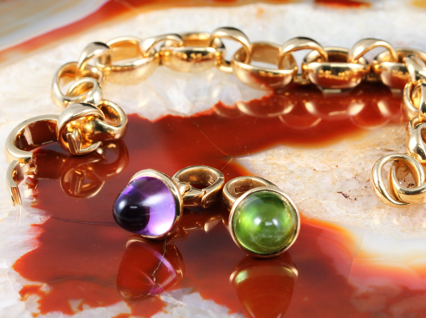 Besetzt mit zwei Mikado Bouquet Clipanhängern (Peridot & Amethyst), mittlere Größe (Ø 12,5mm maximal / Länge mit Öse ca. 28mm)