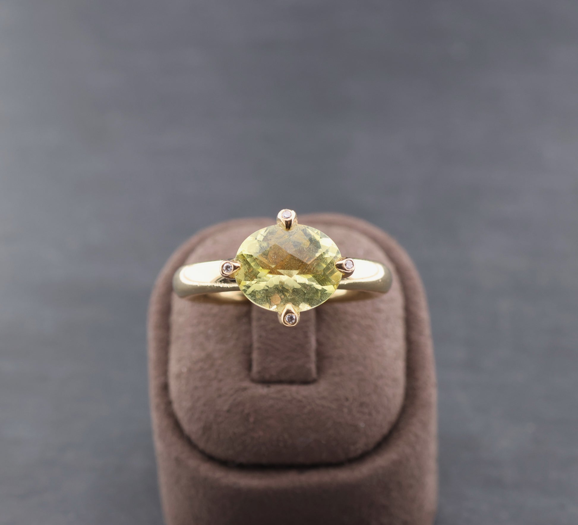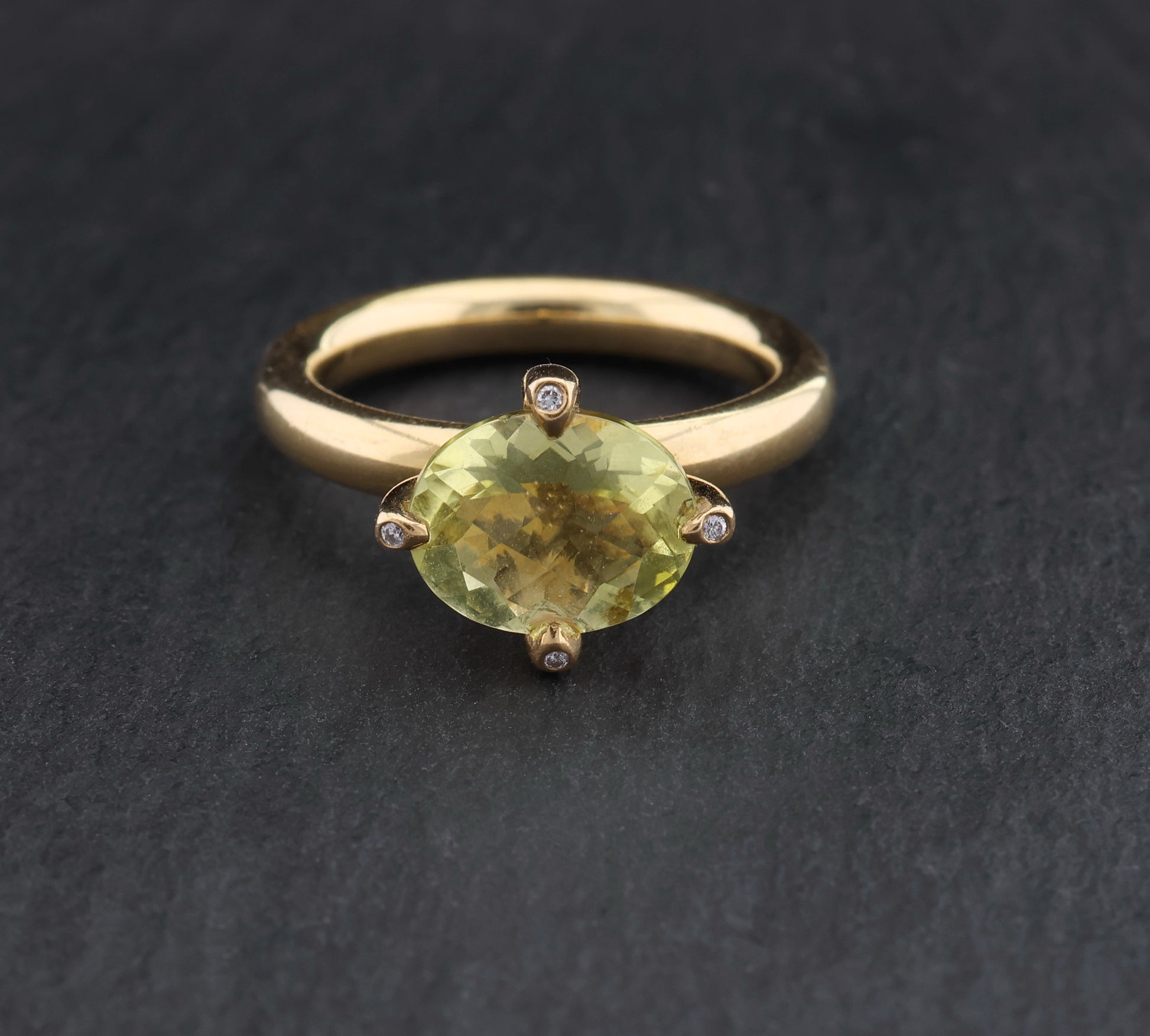 Besetzt mit einem ovalen Lemoncitrin (ca. 11x8mm) und vier kleine Diamanten, zusammen ca. 0,04ct. (G/si)